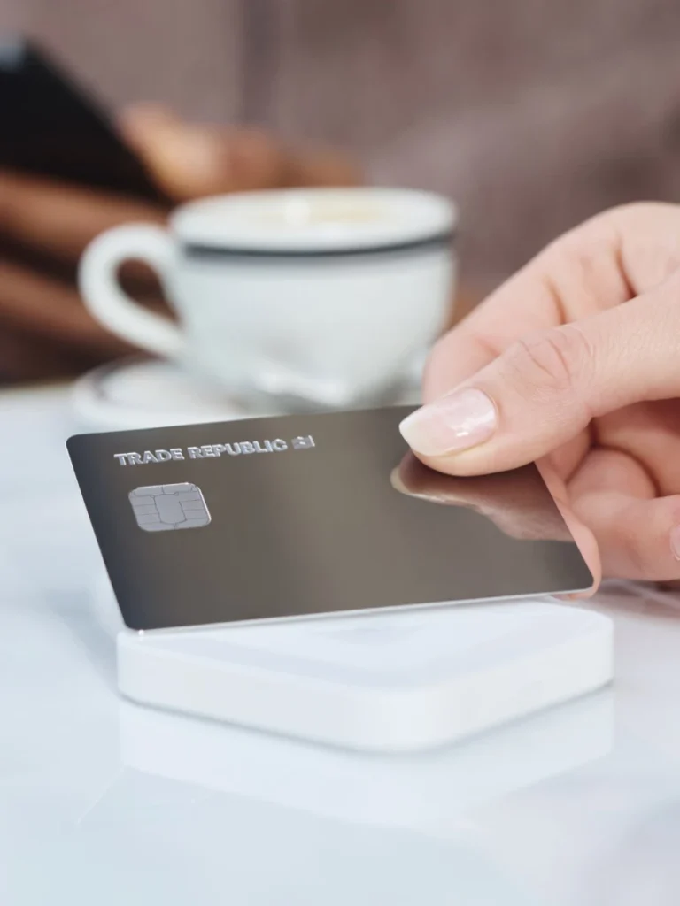 The Trading Republic Cards are subscription free and offer the 1 % Saveback and Round up benefits. With the Classic and Mirror Cards, there are unlimited free ATM withdrawals worldwide, above 100 €. You can use your card online, in stores and for contactless payments around the world where Visa is accepted. For non-euro transactions, we don’t apply additional bank exchange rates fees. Your Trading Republic Card is linked to your account, earning 2 % p.a. interest on your unlimited cash. With it, send money to anyone, safely and instantly, pay bills and receive your salary, no fees.